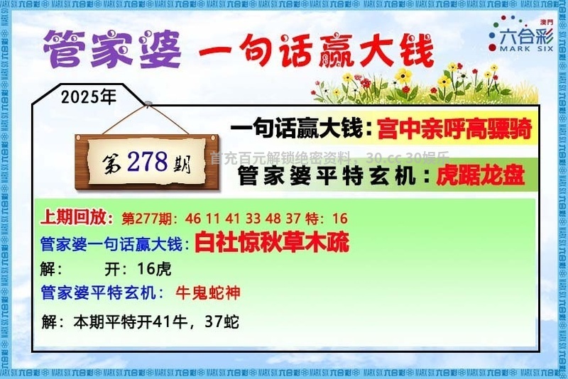 277期:单双中特🥇️【双肖】🥇️开:虎16准 |